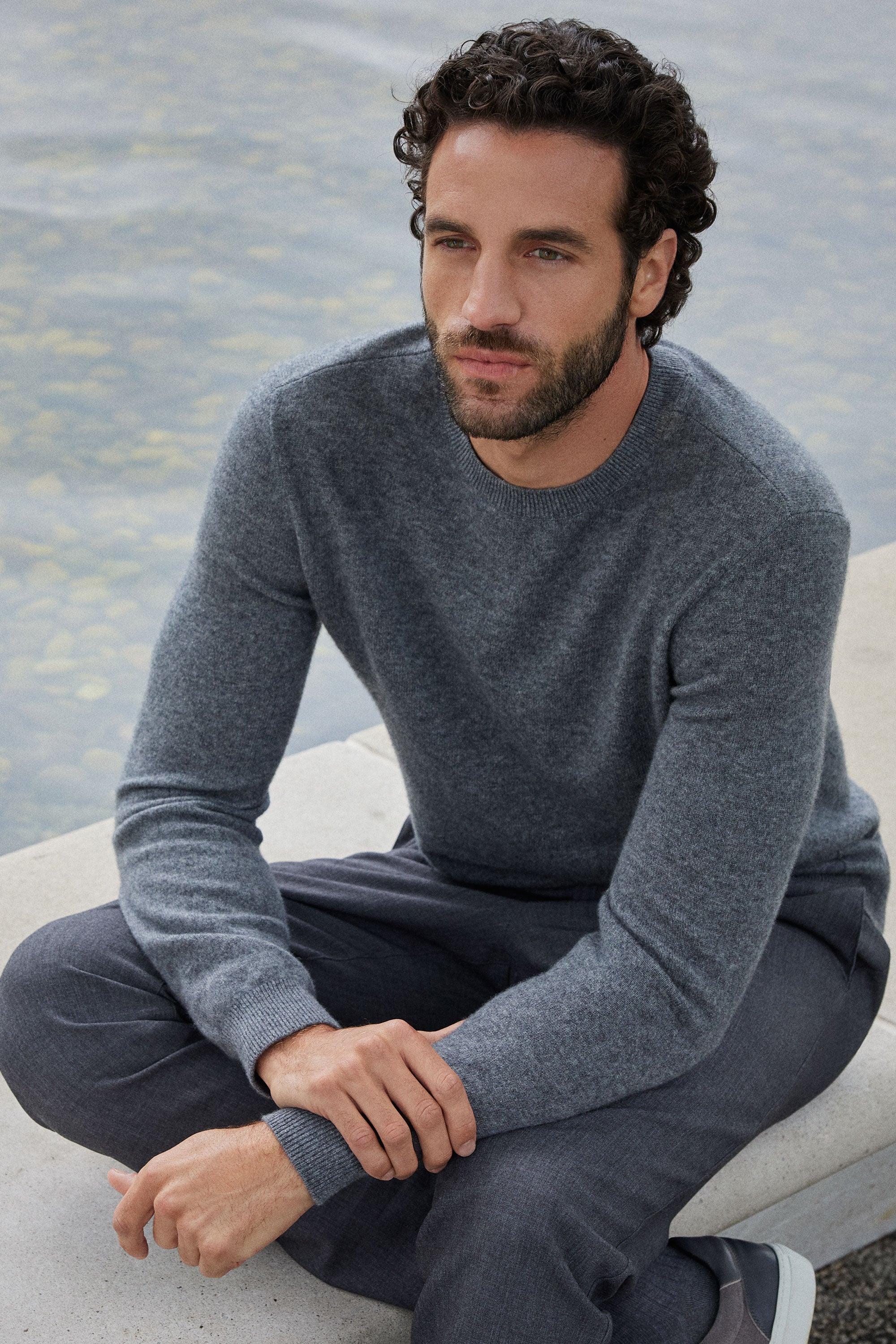 Xander Cashmere Crewneck Sweater - Mid Grey