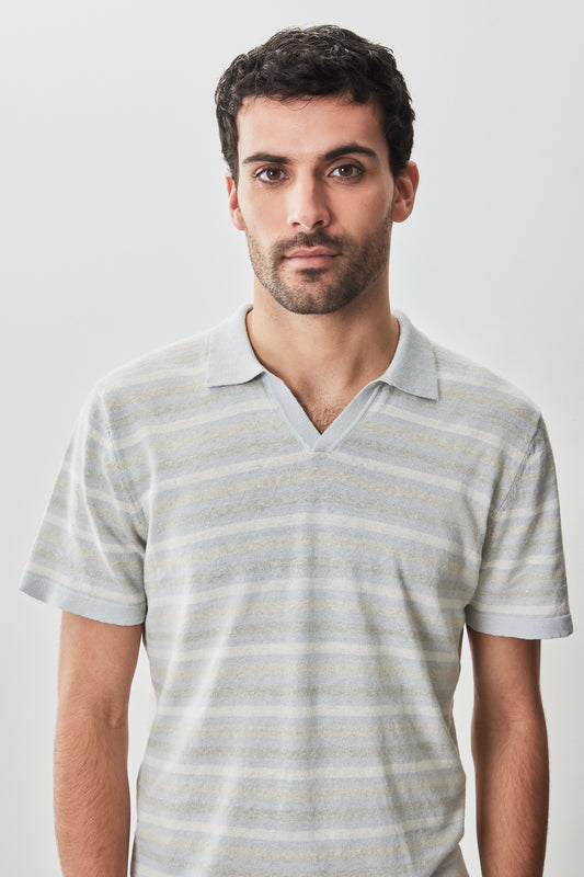 Lesko Open Collar Sweater Polo - Olive