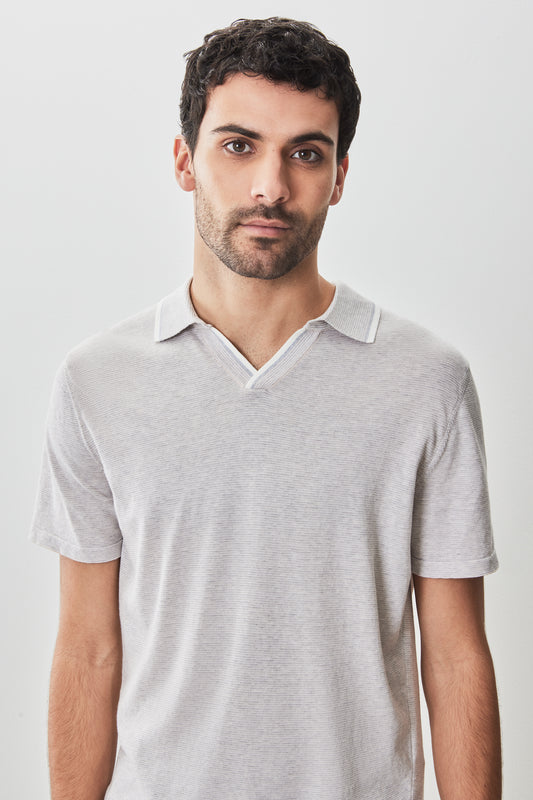 Enrico Open Collar Sweater Polo - Stone
