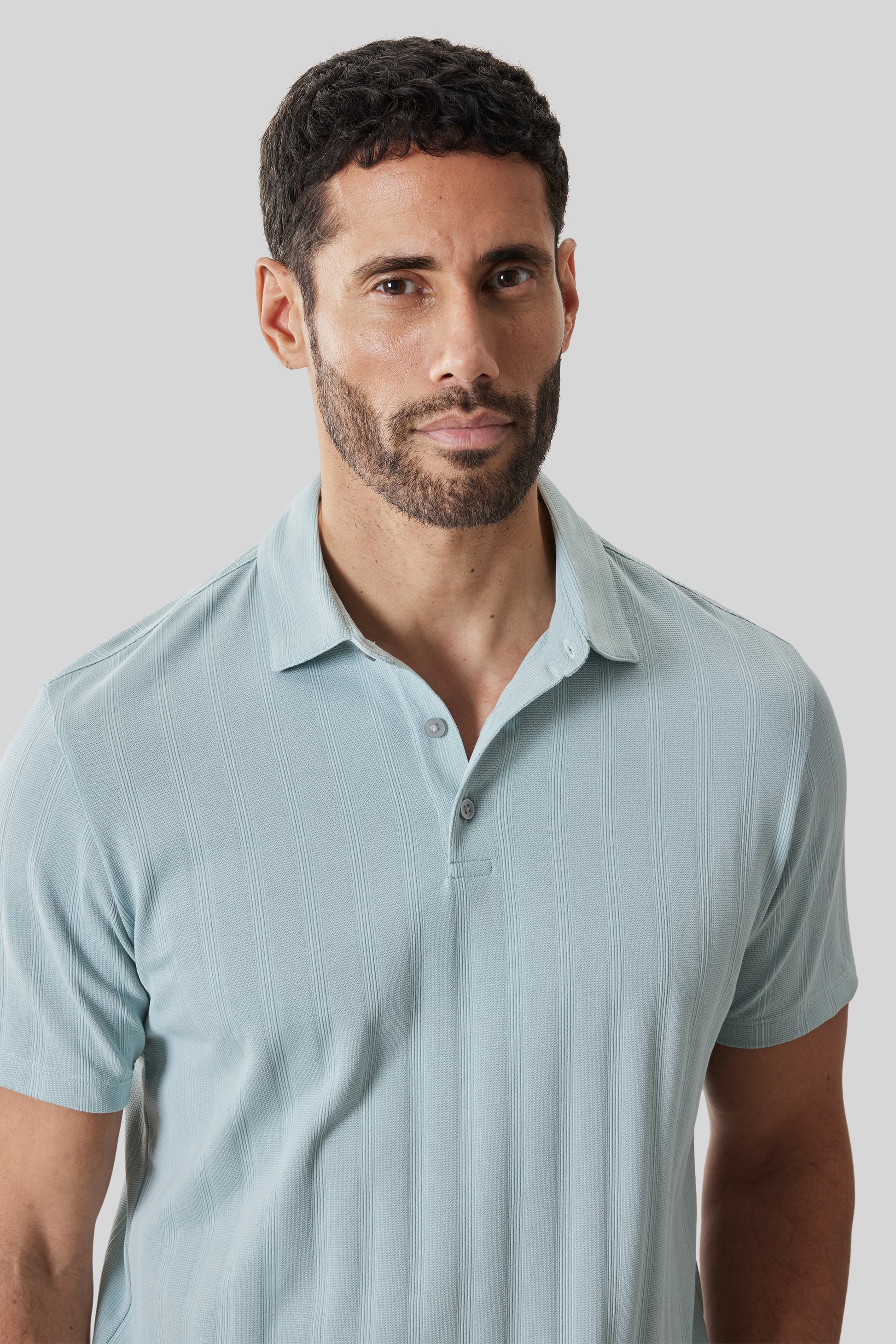 This classic 3-button polo blends timeless style with everyday practicality. Featuring a subtle tonal stripe for a refined, versatile look, it's crafted from an easy-care cotton-rich blend that delivers soft comfort, durability, and effortless maintenance. Perfect for both casual and smart-casual occasions.
