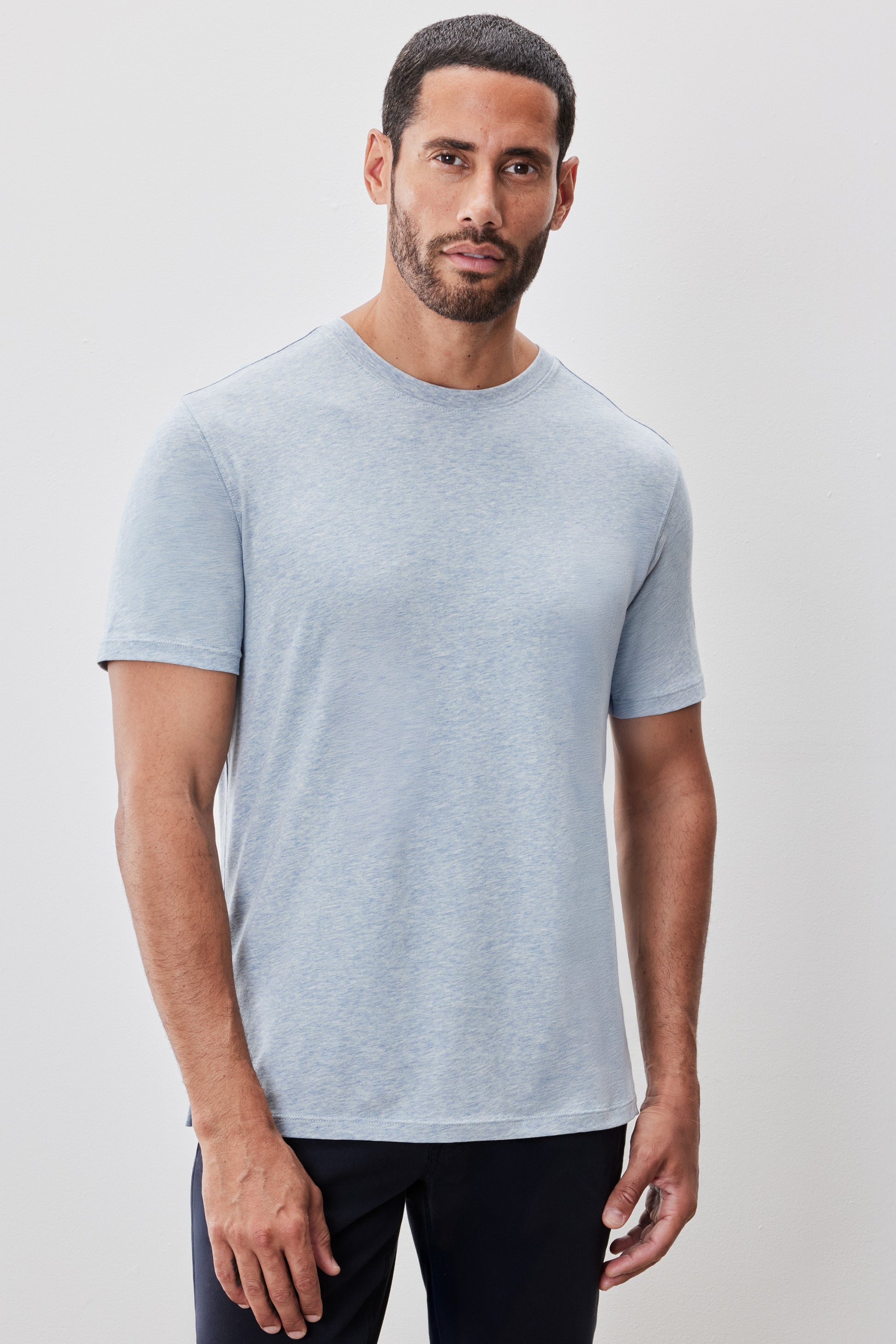 A wardrobe essential, the Barakett Heathered Stretch Tee offers a perfect blend of style and comfort. Crafted with a spandex blend for added stretch, it ensures a snug fit that moves with you. Available in a variety of rich melange colors, this tee is the perfect companion to the  Barakett tee.