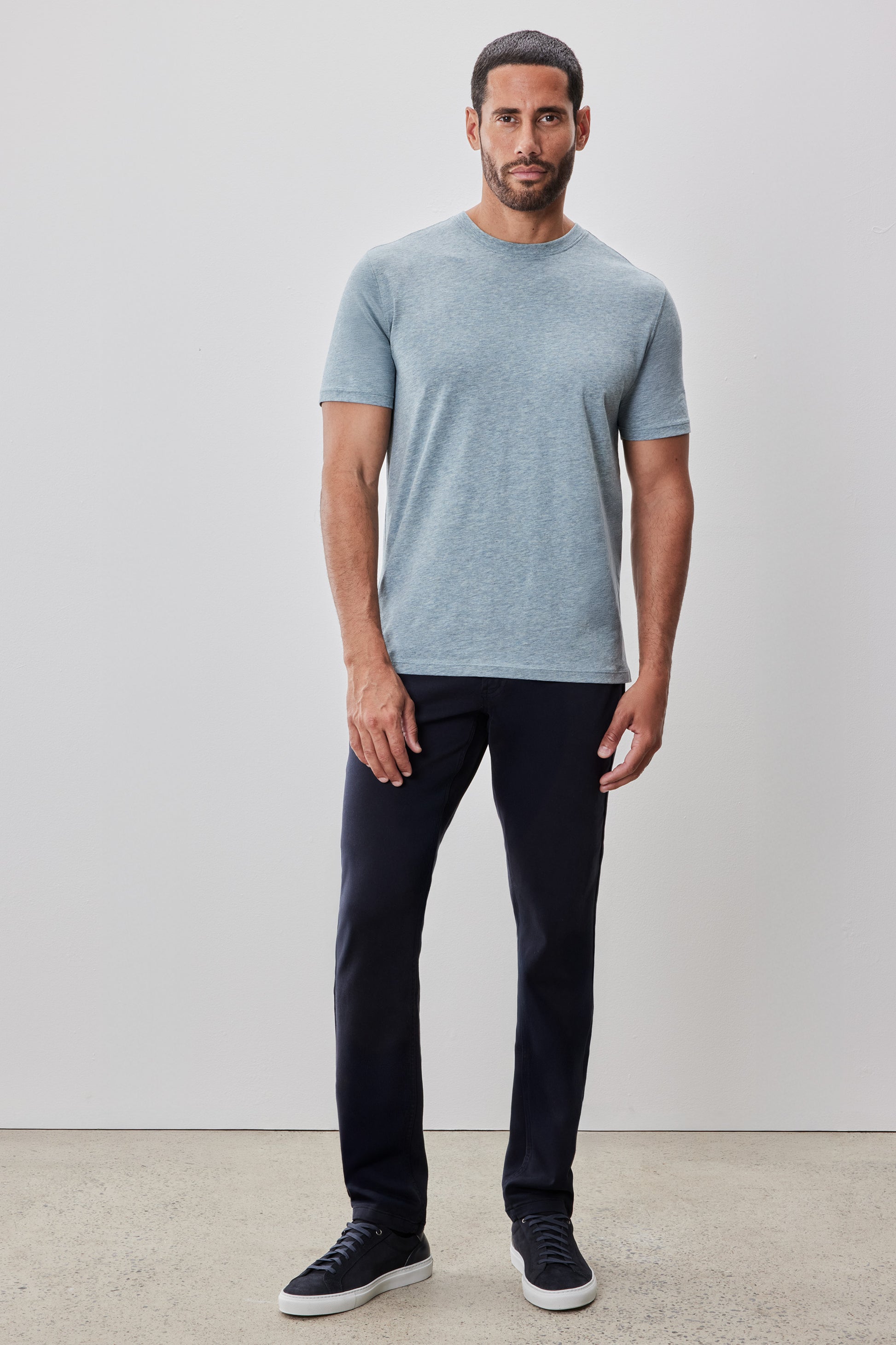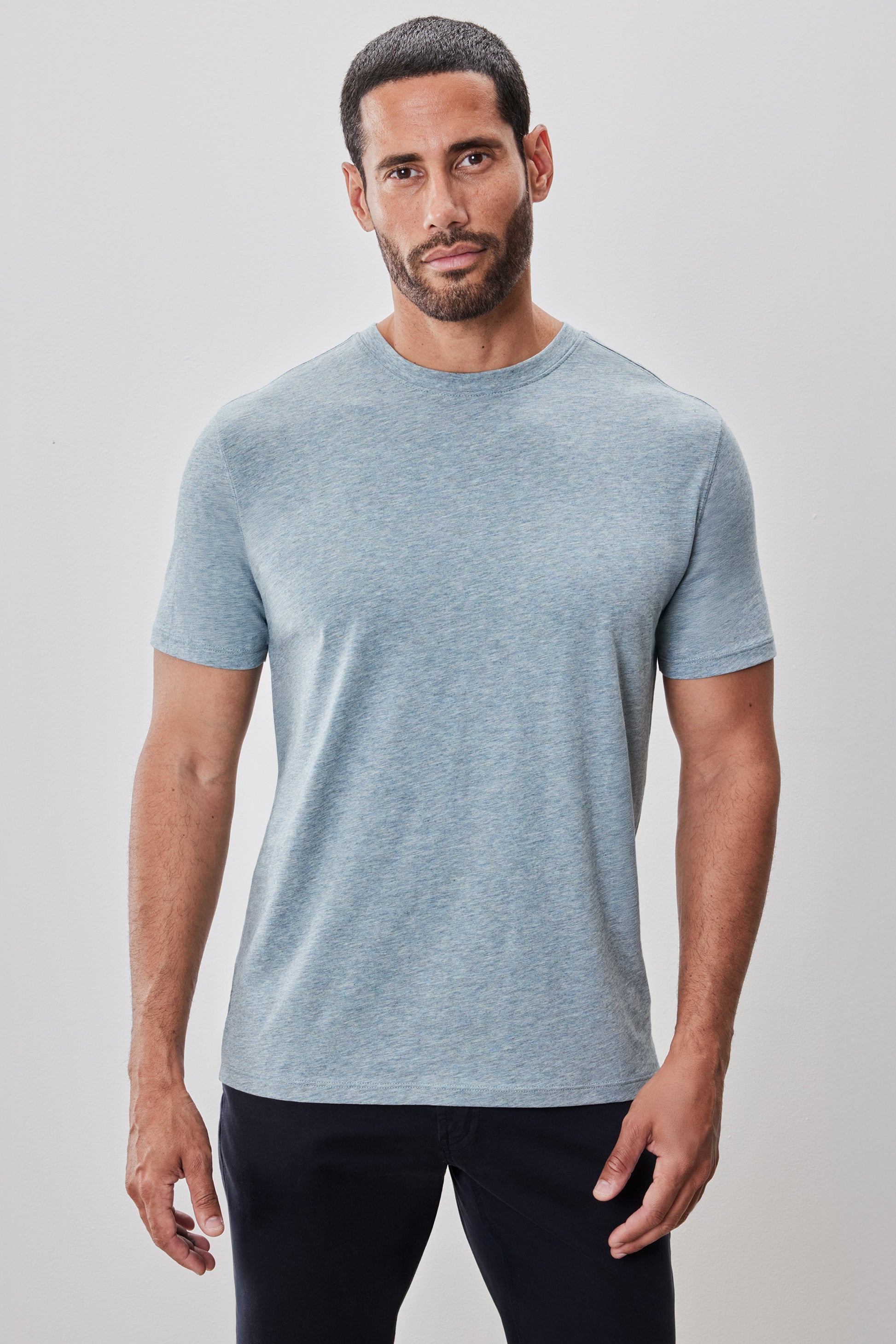 A wardrobe essential, the Barakett Heathered Stretch Tee offers a perfect blend of style and comfort. Crafted with a spandex blend for added stretch, it ensures a snug fit that moves with you. Available in a variety of rich melange colors, this tee is the perfect companion to the  Barakett tee.