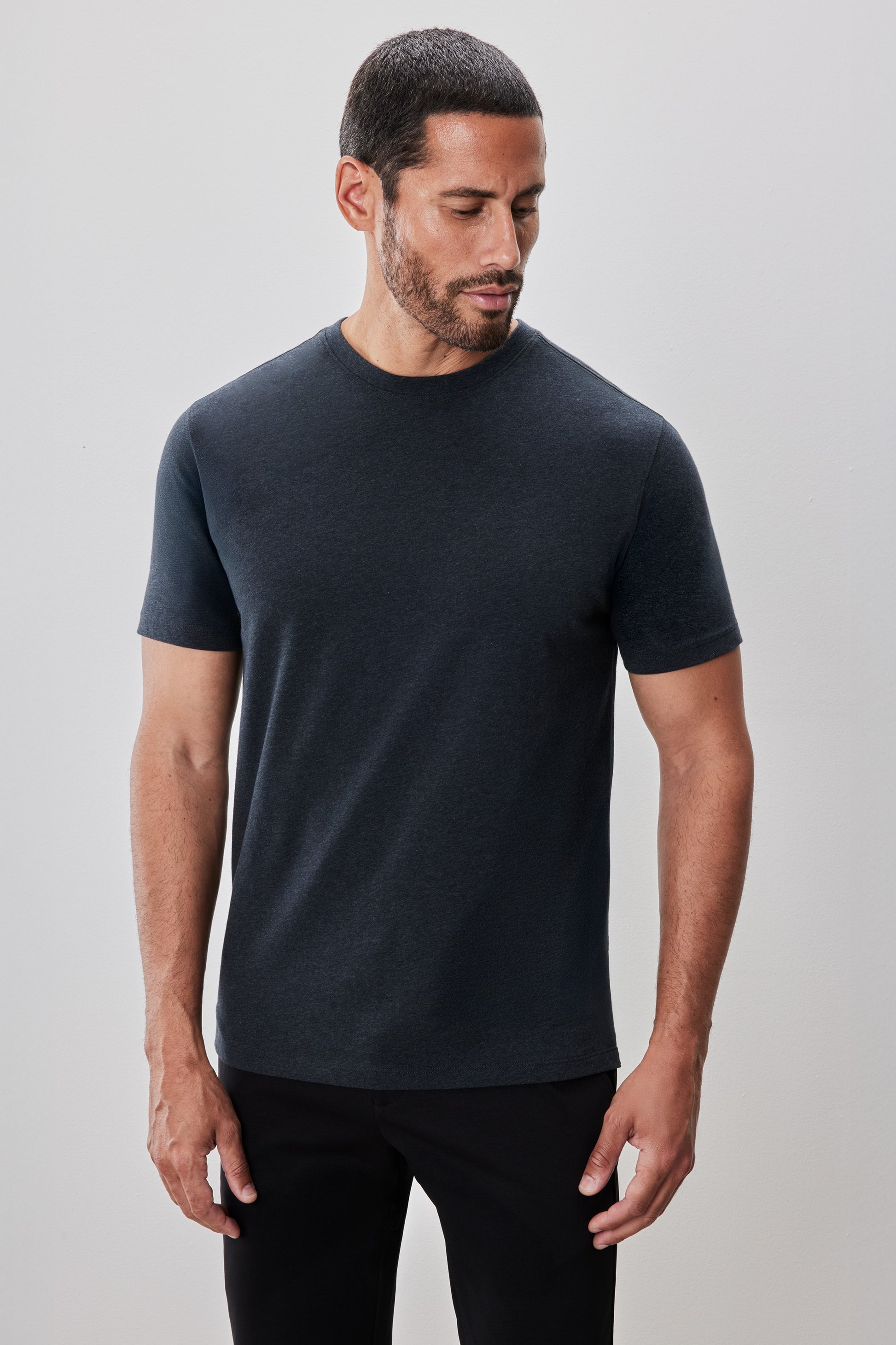 A wardrobe essential, the Barakett Heathered Stretch Tee offers a perfect blend of style and comfort. Crafted with a spandex blend for added stretch, it ensures a snug fit that moves with you. Available in a variety of rich melange colors, this tee is the perfect companion to the Barakett tee.