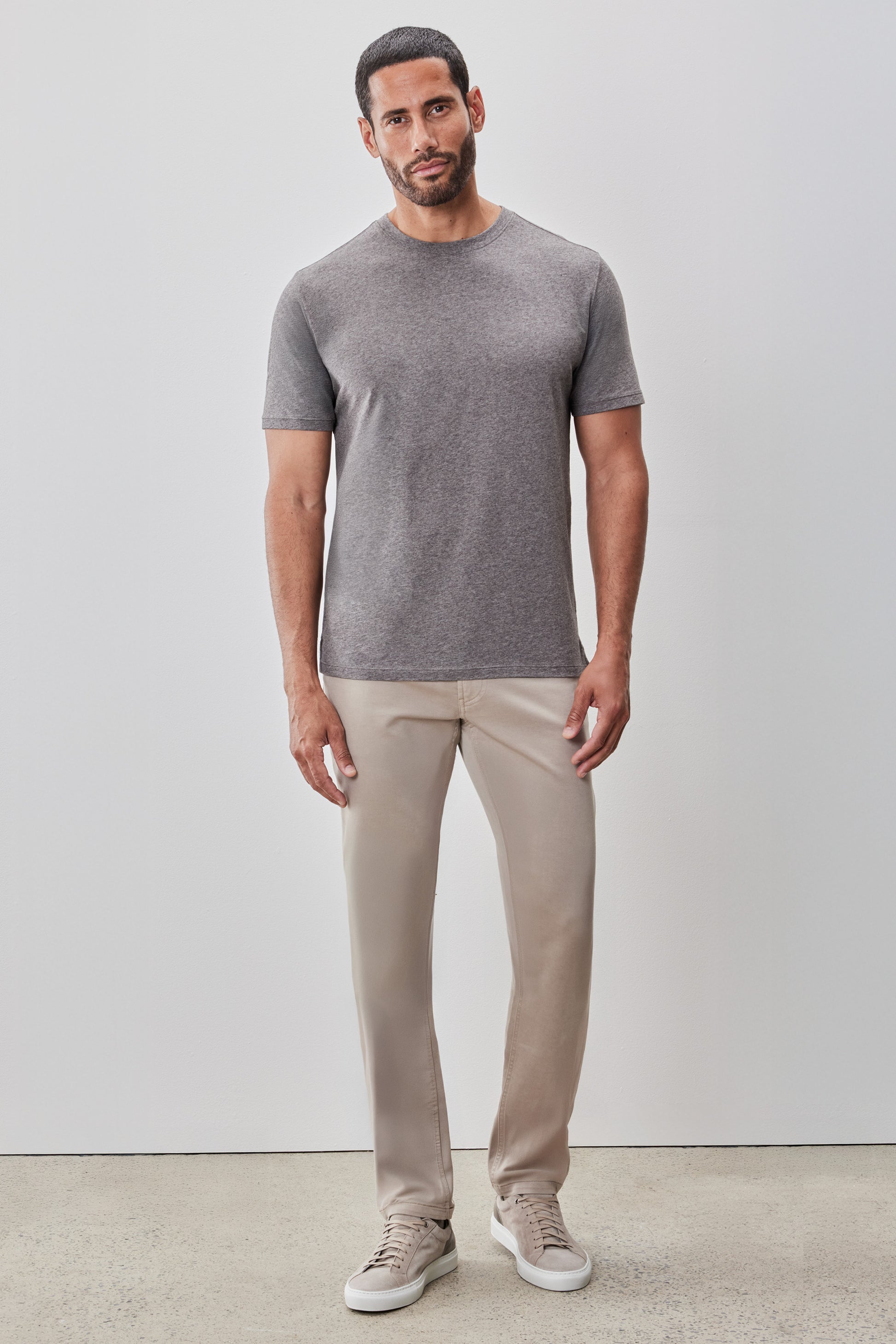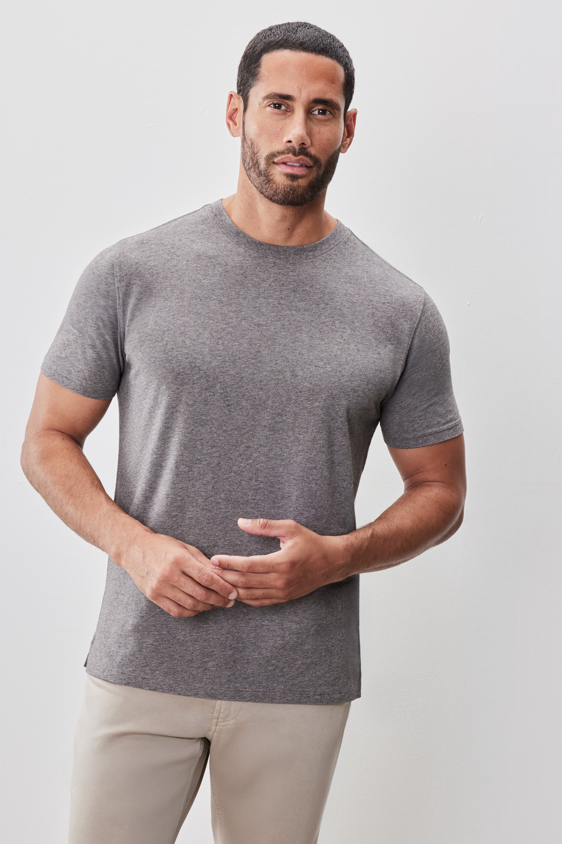 A wardrobe essential, the Barakett Heathered Stretch Tee offers a perfect blend of style and comfort. Crafted with a spandex blend for added stretch, it ensures a snug fit that moves with you. Available in a variety of rich melange colors, this tee is the perfect companion to the  Barakett tee.