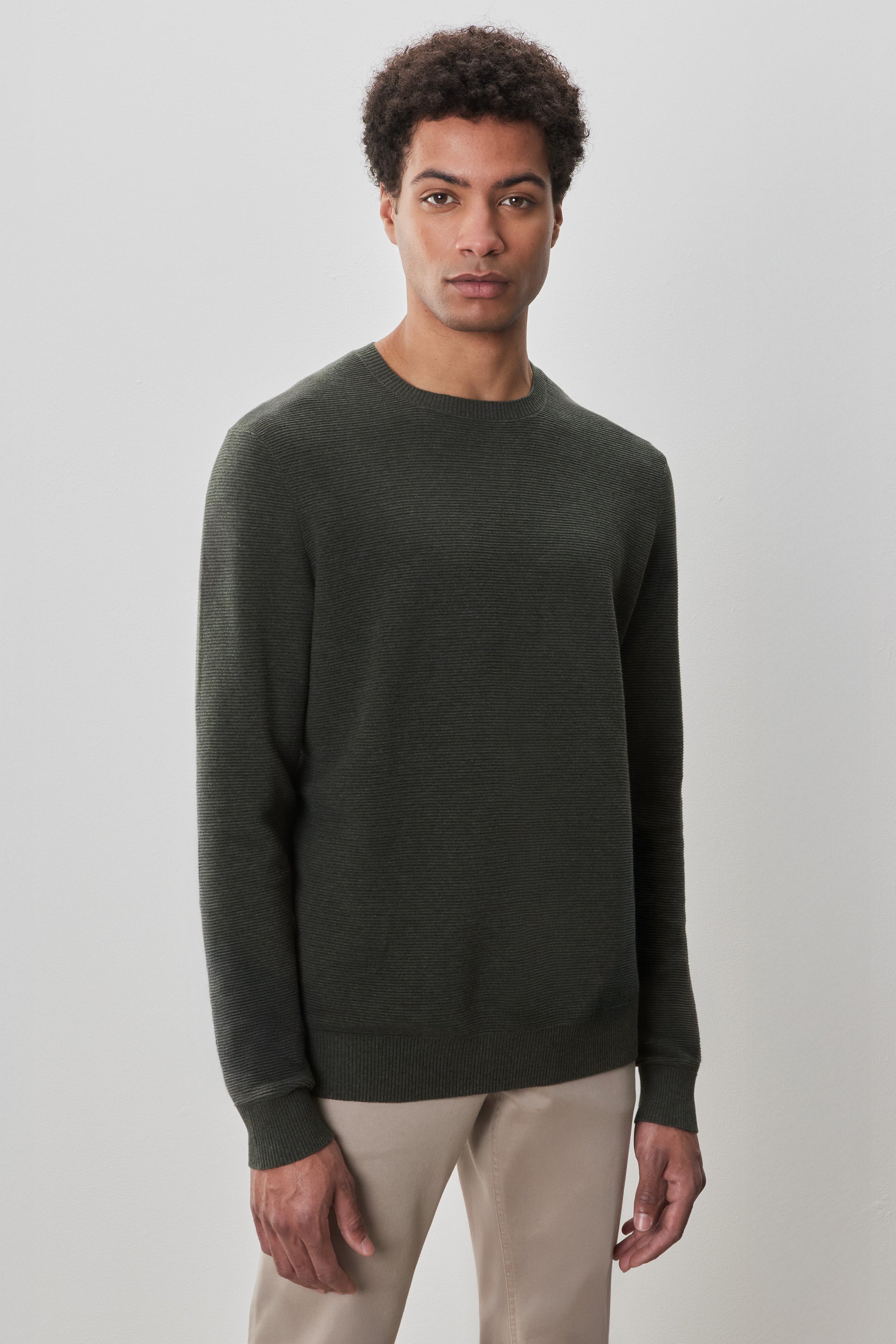This casual cotton sweater delivers everyday comfort with a refined, textured finish. Lightweight and versatile, it's perfect for wearing on its own or layered under a sportcoat for a polished, laid-back look. A timeless essential for effortless style and ease.