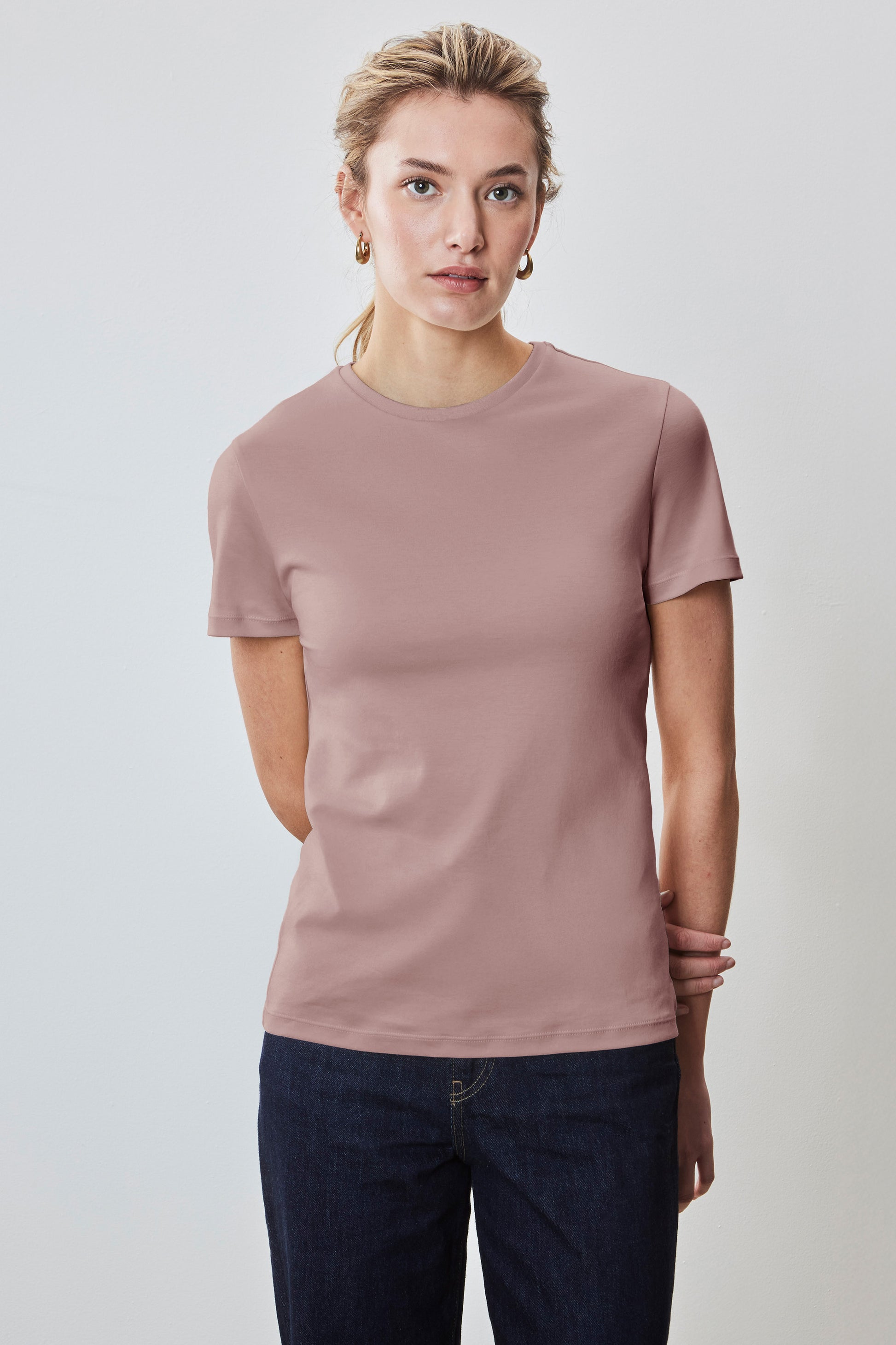 Introducing the Barakett Women's Tee. Featuring a more subtle neckline and a slimmer fit, our women's T-shirt is made with our exclusive USA-grown Pima Cotton and uses Soft Water finishing to create the ultimate in comfort, luxurious hand feel, and clean appearance. The best dressy T-shirt, it's great on its own or as a universal layering piece.