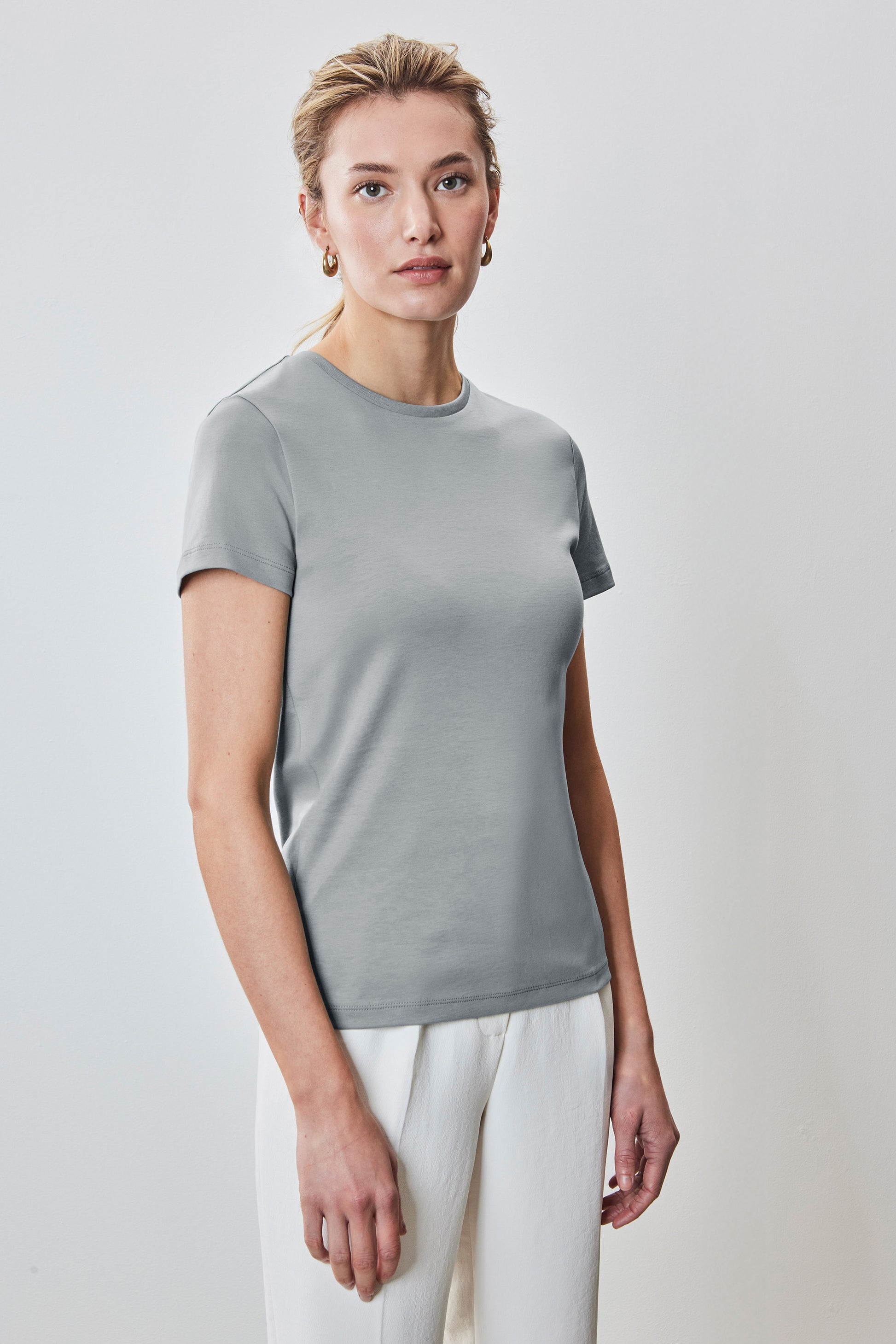 Introducing the Barakett Women's Tee. Featuring a more subtle neckline and a slimmer fit, our women's T-shirt is made with our exclusive USA-grown Pima Cotton and uses Soft Water finishing to create the ultimate in comfort, luxurious hand feel, and clean appearance. The best dressy T-shirt, it's great on its own or as a universal layering piece.