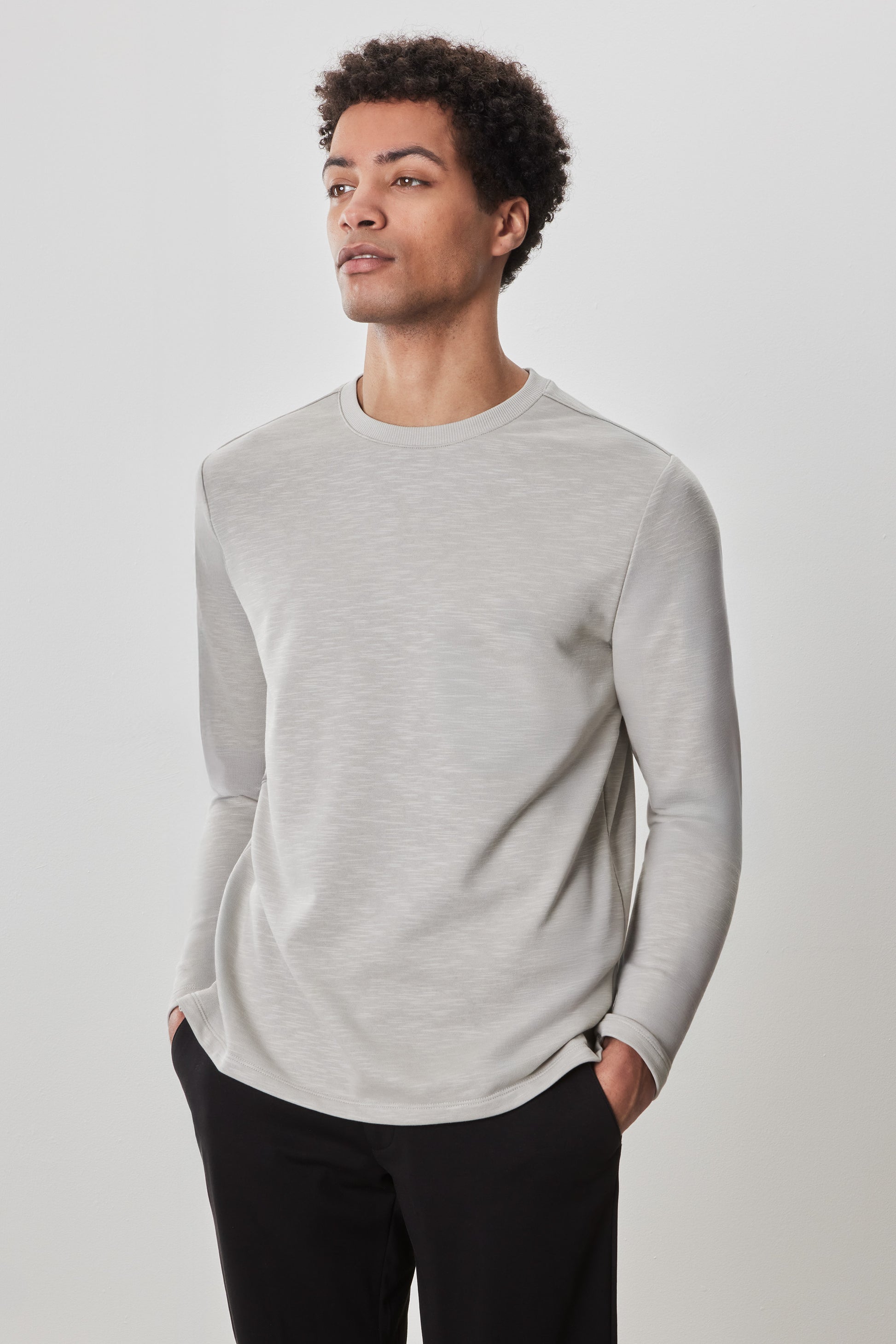 Made from an easy-care, cotton-rich fabric, this long sleeve crew neck tee delivers comfort with minimal maintenance. The slub terry knit adds texture and a relaxed, casual vibe, while the long sleeves provide just the right amount of warmth for crisp fall evenings. A perfect layering piece or standalone essential for cooler days.