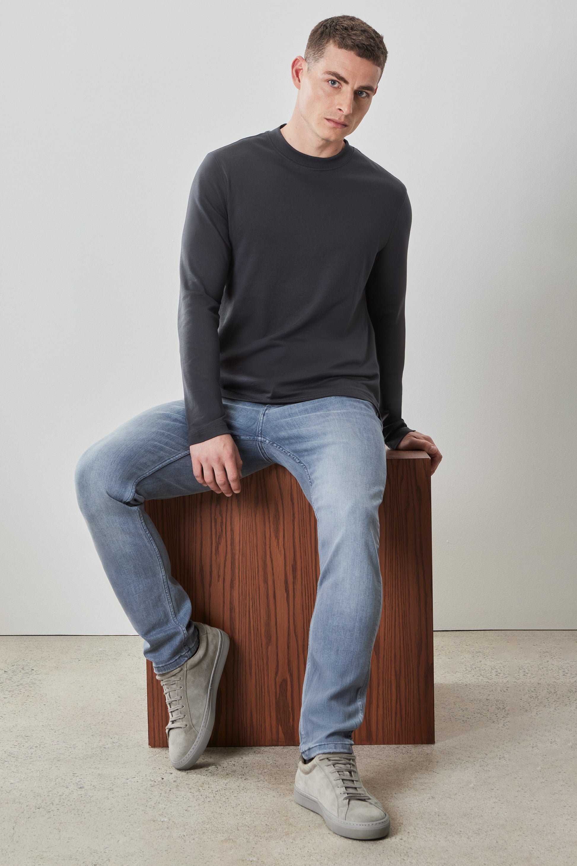 Elevated cool. The long sleeve version of The Barakett Tee is made in our signature Pima cotton fabric. It has the same comfort and style in a timeless long-sleeve silhouette. Equally comfortable as a layering piece for a night out or by itself at home for a night in. Any way you wear it, you'll look and feel good.