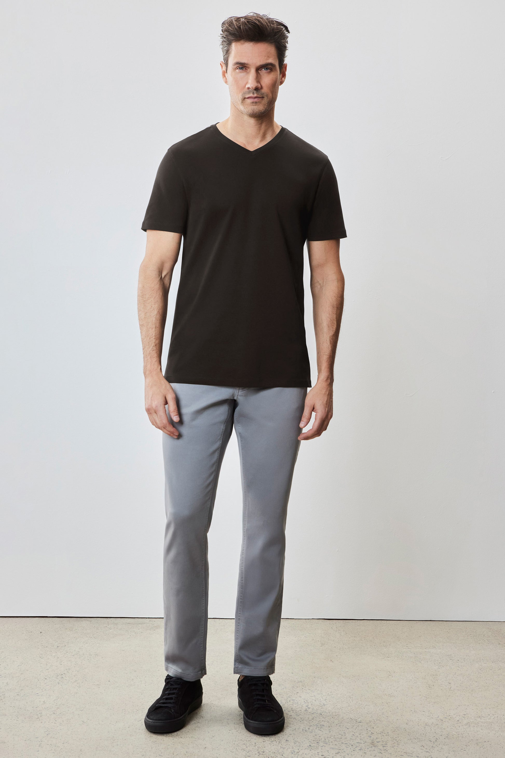 Also known as the Georgia V-neck T-shirt. It is the equally comfortable and stylish brother of The Barakett Tee. Made with our signature Pima cotton fabric with Soft Water finishing, it's the ultimate in comfort, luxurious hand feel, and clean appearance. A versatile piece in any man's wardrobe; elevate any look with the most comfortable V-neck ever.