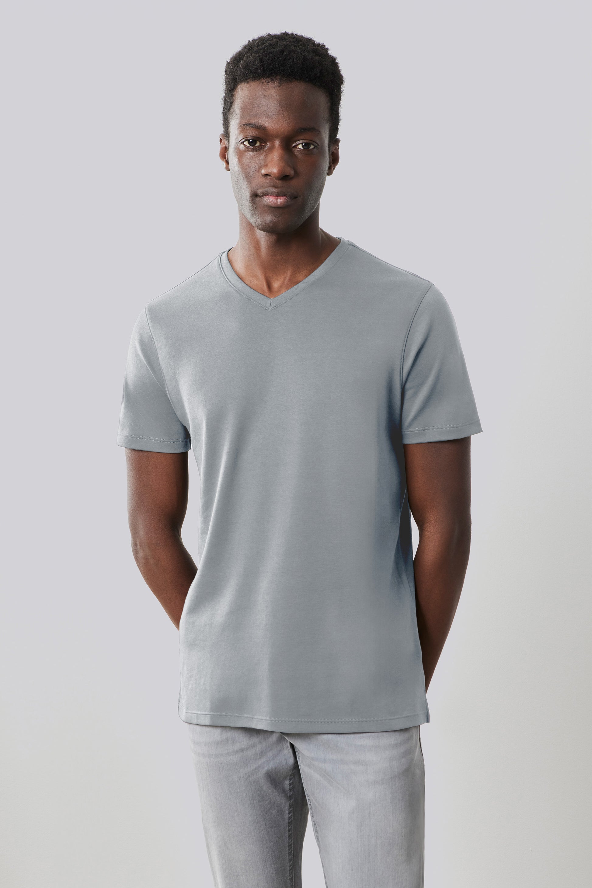 Also known as the Georgia V-neck T-shirt. It is the equally comfortable and stylish brother of The Barakett Tee. Made with our signature Pima cotton fabric with Soft Water finishing, it's the ultimate in comfort, luxurious hand feel, and clean appearance. A versatile piece in any man's wardrobe; elevate any look with the most comfortable V-neck ever.