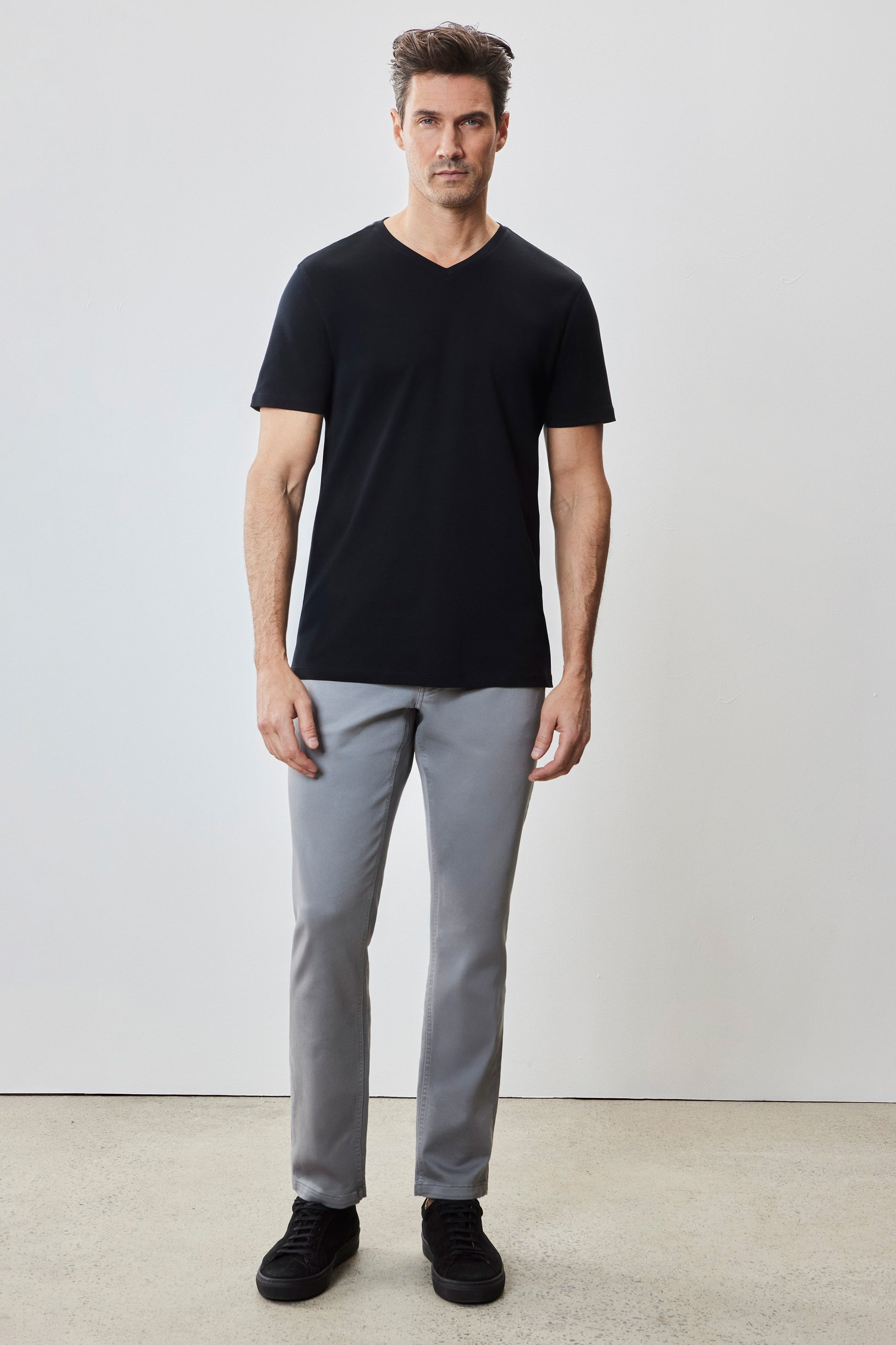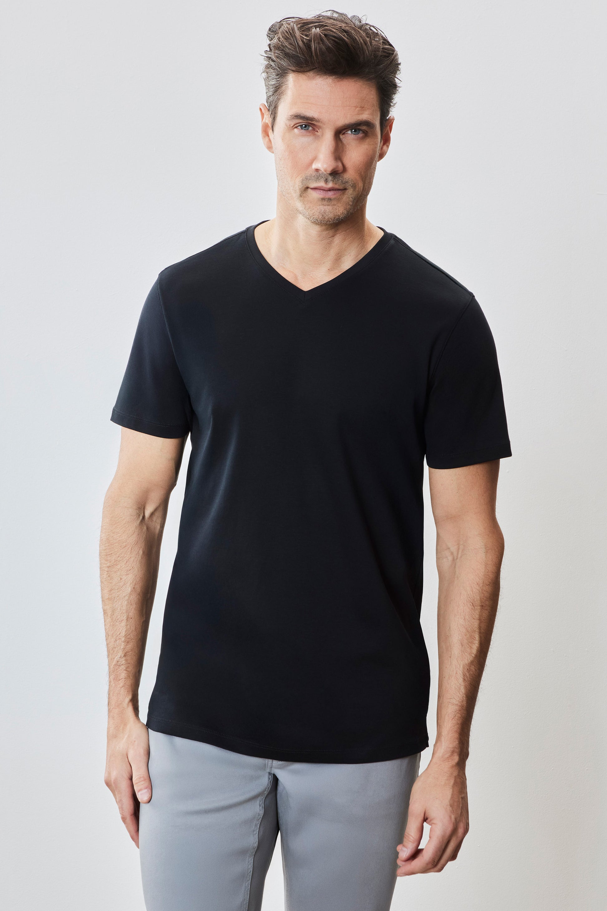 Also known as the Georgia V-neck T-shirt. It is the equally comfortable and stylish brother of The Barakett Tee. Made with our signature Pima cotton fabric with Soft Water finishing, it's the ultimate in comfort, luxurious hand feel, and clean appearance. A versatile piece in any man's wardrobe; elevate any look with the most comfortable V-neck ever.