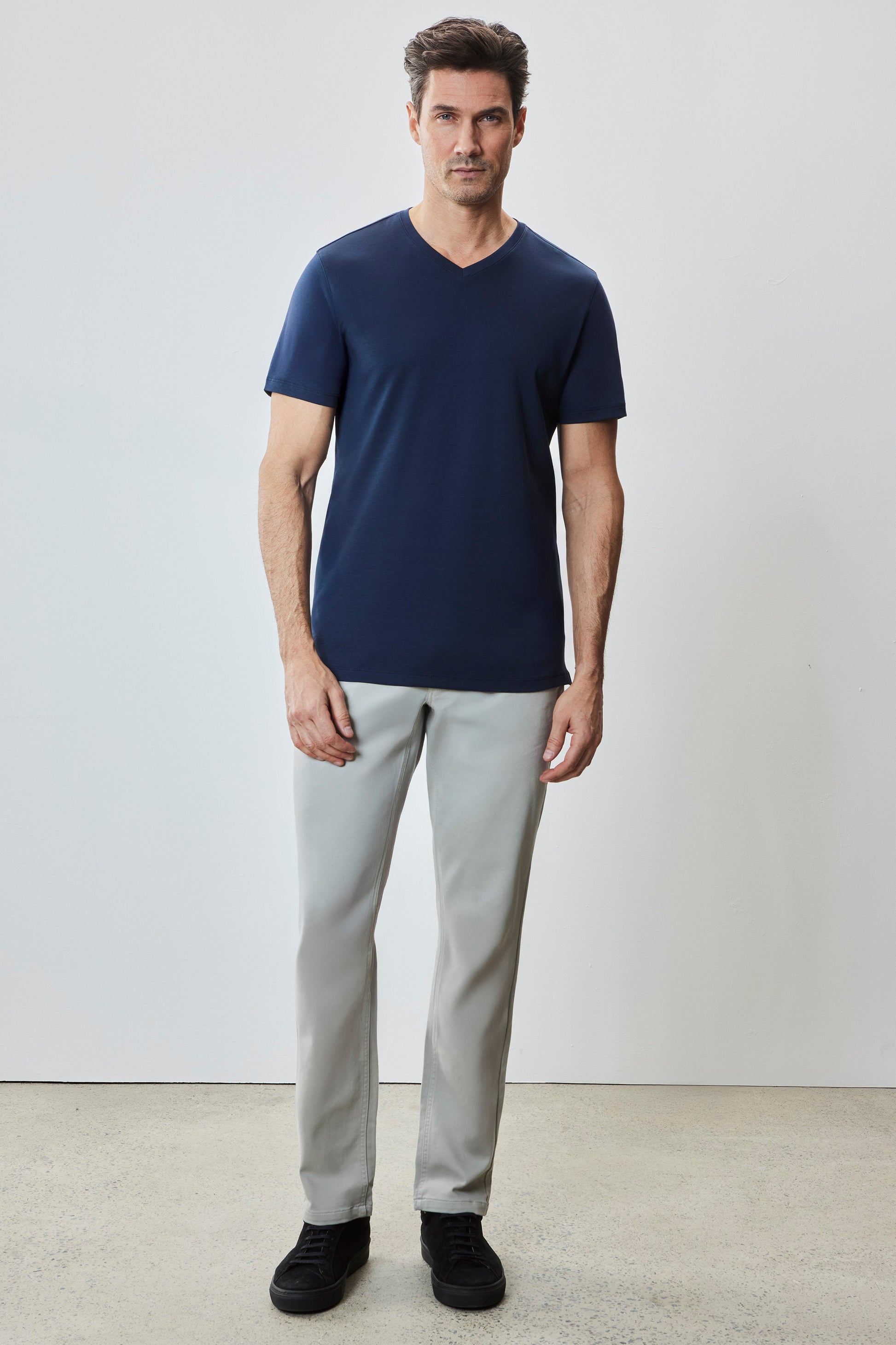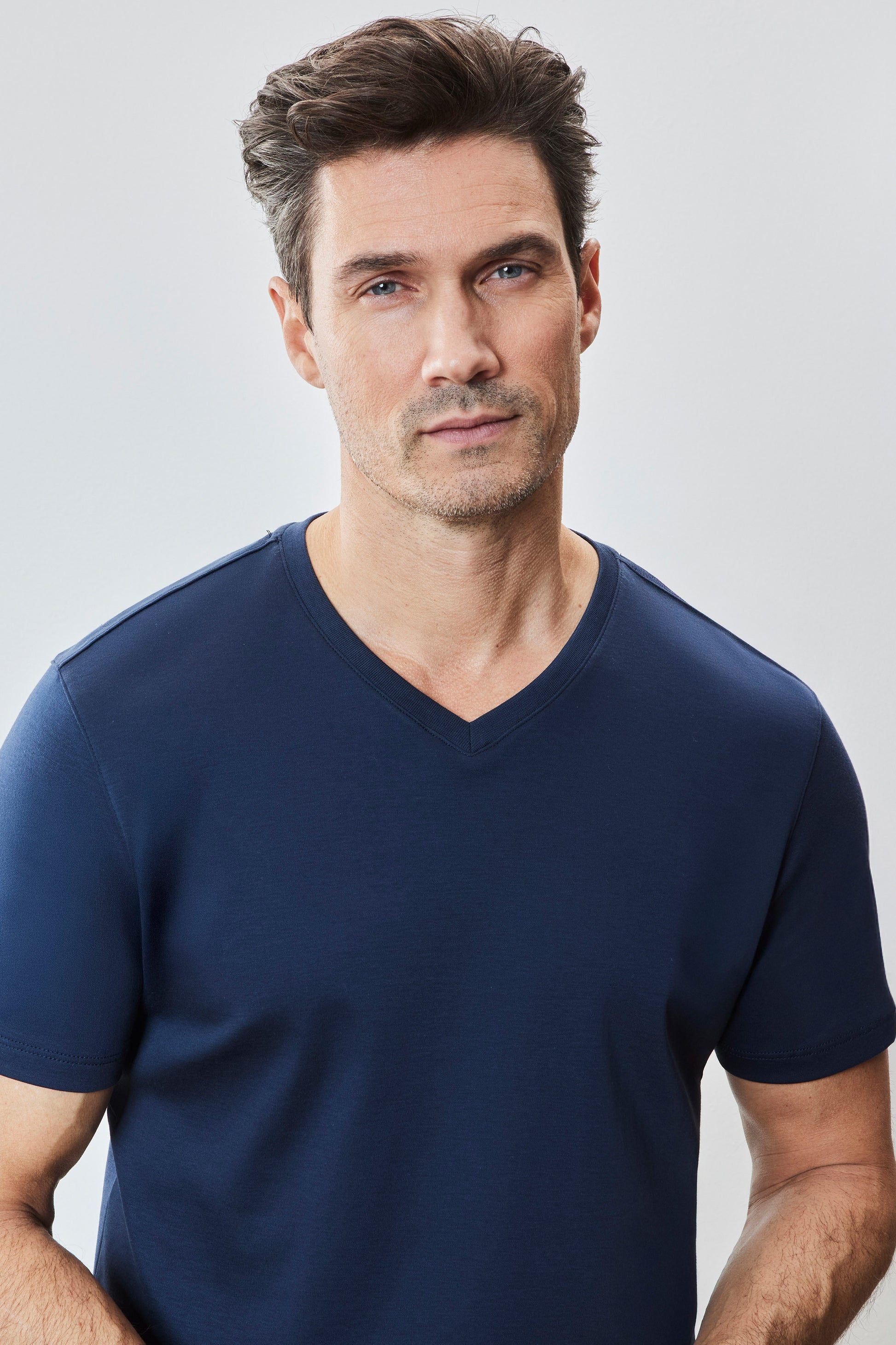 Also known as the Georgia V-neck T-shirt. It is the equally comfortable and stylish brother of The Barakett Tee. Made with our signature Pima cotton fabric with Soft Water finishing, it's the ultimate in comfort, luxurious hand feel, and clean appearance. A versatile piece in any man's wardrobe; elevate any look with the most comfortable V-neck ever.